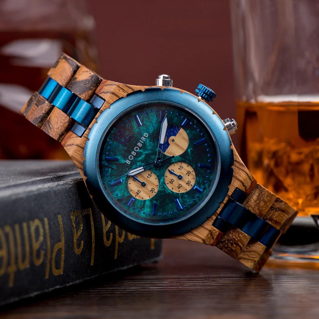 NOTA: Debido a la naturaleza variable de la madera, el color de su reloj puede ser ligeramente diferente de la foto haciendo su reloj único en especie.