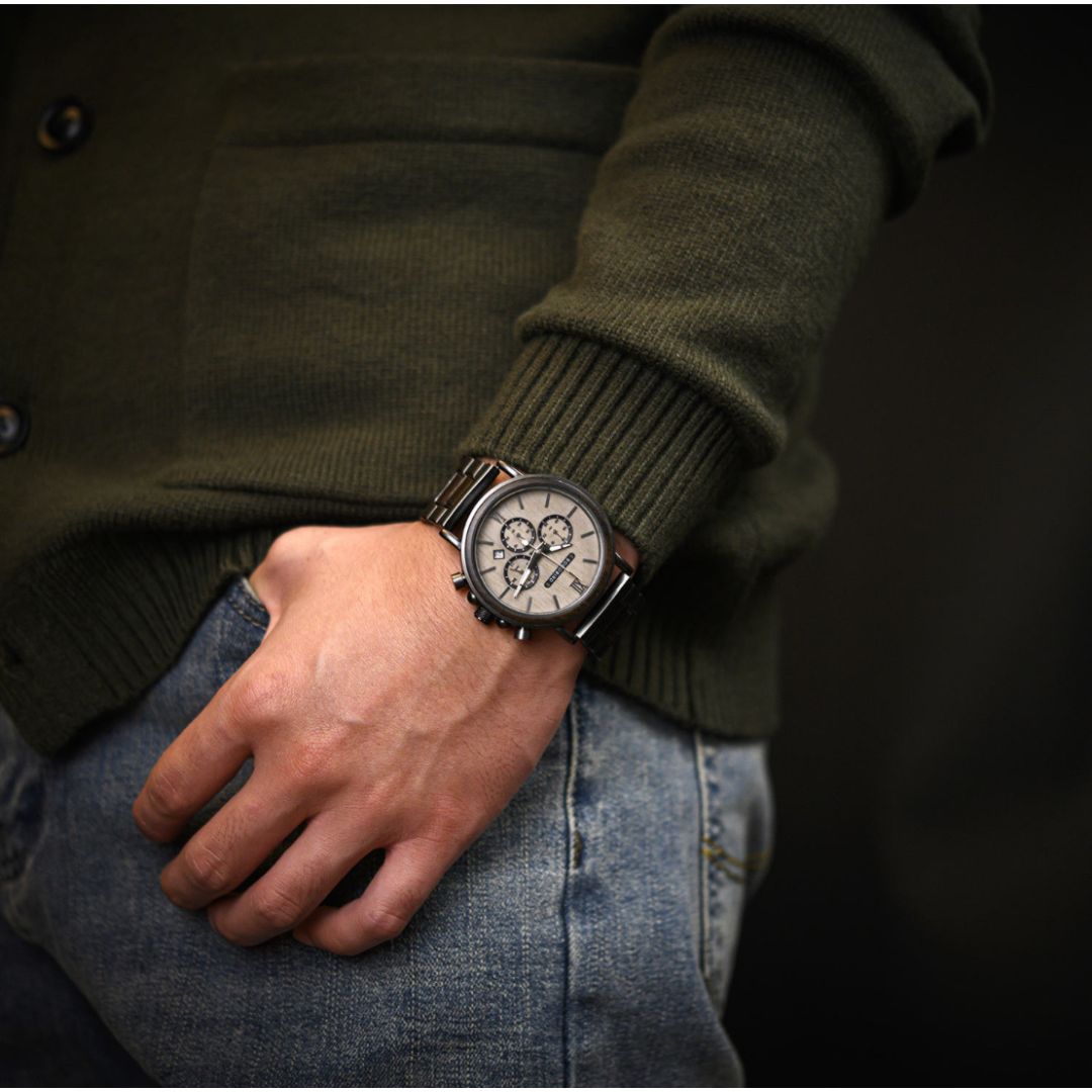 “Inspirado en la armonía entre naturaleza y modernidad, este diseño trae a tu muñeca la calidez de la madera y la precisión del movimiento japonés.”